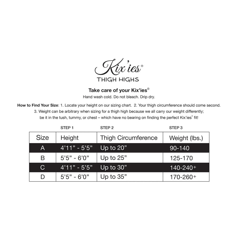 Kixies black rhinestone Mardi Gras thigh-highs! The final, and most important, touch to show you're ready to celebrate Mardi Gras. A classic black fishnet that shines with green, purple, and gold glitz! Step up your game with Kix'ies in these far from average stockings! Our thigh-highs are designed for all-day wear, with a no-slip-grip. We offer Petite to Plus Size Stockings and are the #1 thigh-highs that actually stay up! Sizing: Measure by height first and thigh circumference second. Weight can be arbitrary when sizing for a thigh-high. We all carry our weight differently; be it in the tush, tummy or thighs – which have no bearing on finding the perfect Kix'ies® fit! Time to kick those binding tights and outdated hosiery to the curb! |